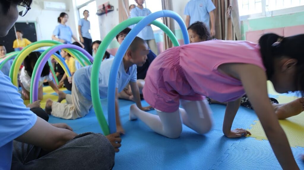 當旋律輕吻孤獨:為水晶寶貝推開陽光滿溢的窗藥學院“半夏鹿鳴”志愿服務隊活動紀實(三) 爬行的力量:激活孤獨癥兒童身體與認知的橋梁 彩色軟管搭成的甬道里,光影斑駁。水晶寶貝與志愿者牽手鉆行,鍛煉了肢體的協調與平衡。彩虹傘上,斑斕色塊隨蹦跳起伏,驚醒了孩子眼里的光。水晶寶貝對顏色有著獨特的感知與偏愛,是感官的溫柔喚醒,是感知世界的特別窗口。