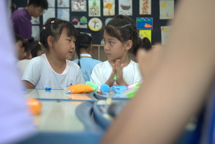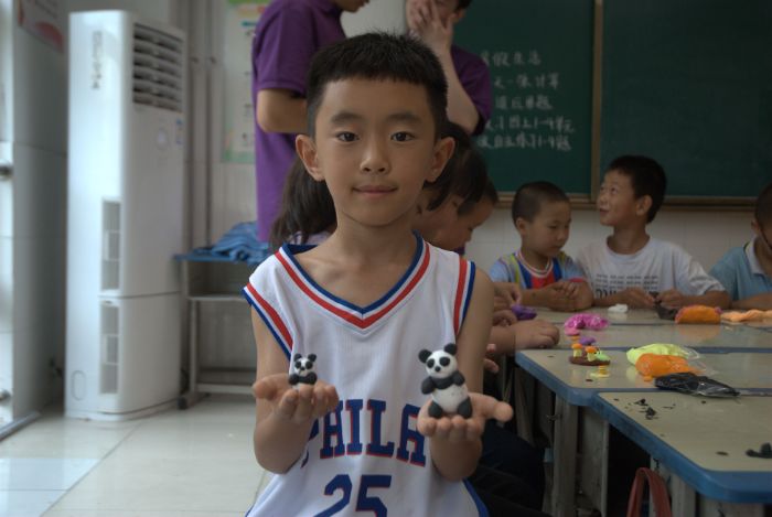 第二個部分是讓同學們捏出自己的夢想。實踐隊員讓同學們說出自己的理想,一開始同學們還很拘束,為了鼓勵大家,實踐團成員們說出了自己的理想。有了實踐團成員們的帶領,同學們就沒有那么拘束了,紛紛站起來分享自己的理想。有的想當一名警察,有的想當一名大熊貓飼養員,有的想當一名軍人……“同學們,現在來用手中的橡皮泥,捏出和自己夢想有關的物品吧!”伴隨著實踐隊員的介紹,同學們開始了他們的創作。同學們根據自己的想象,使用最簡單的圖形,捏出了各式各樣的物品,如大熊貓、警車、花朵等。在創作時,同學們也會相互的交流,進行一番“頭腦風暴”。在這樣氛圍下,一個個承載著夢想的造型在稚嫩的小手中誕生。