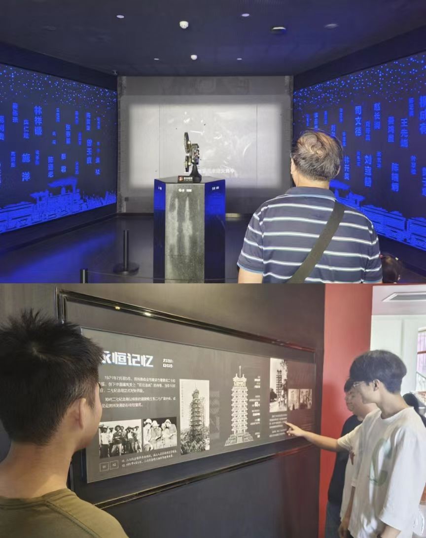 隊員通過預約進入二七塔,通過墻上事跡展及事跡復原錄像詳細了解認識二七工人事跡。