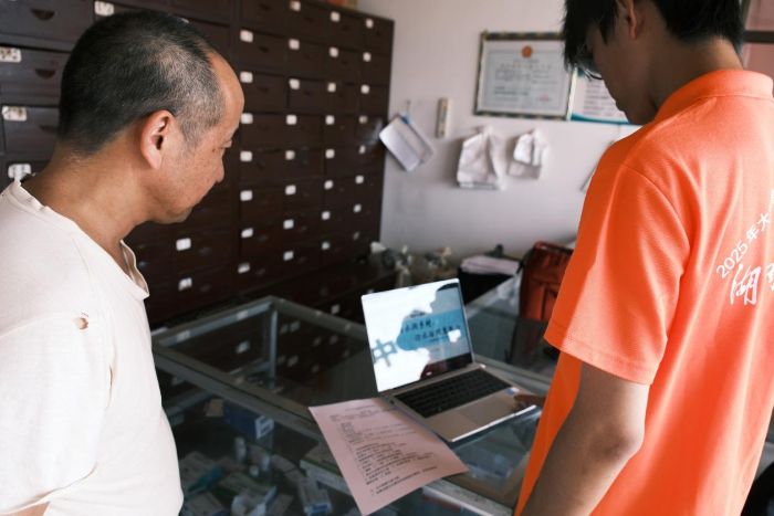 圖為“治水七星隊”在西湖寺村醫務室進行農村污水處理的宣講 校地聯動:共繪生態藍圖。本次實踐獲西湖寺村村委會大力支持與村民熱情配合。村委會工作人員表示:“大學生的調研和宣講帶來新思路,提升村民對污水處理和金融政策的認識,也增強了大家對金融政策的了解,對我們村的環境治理工作很有幫助。”