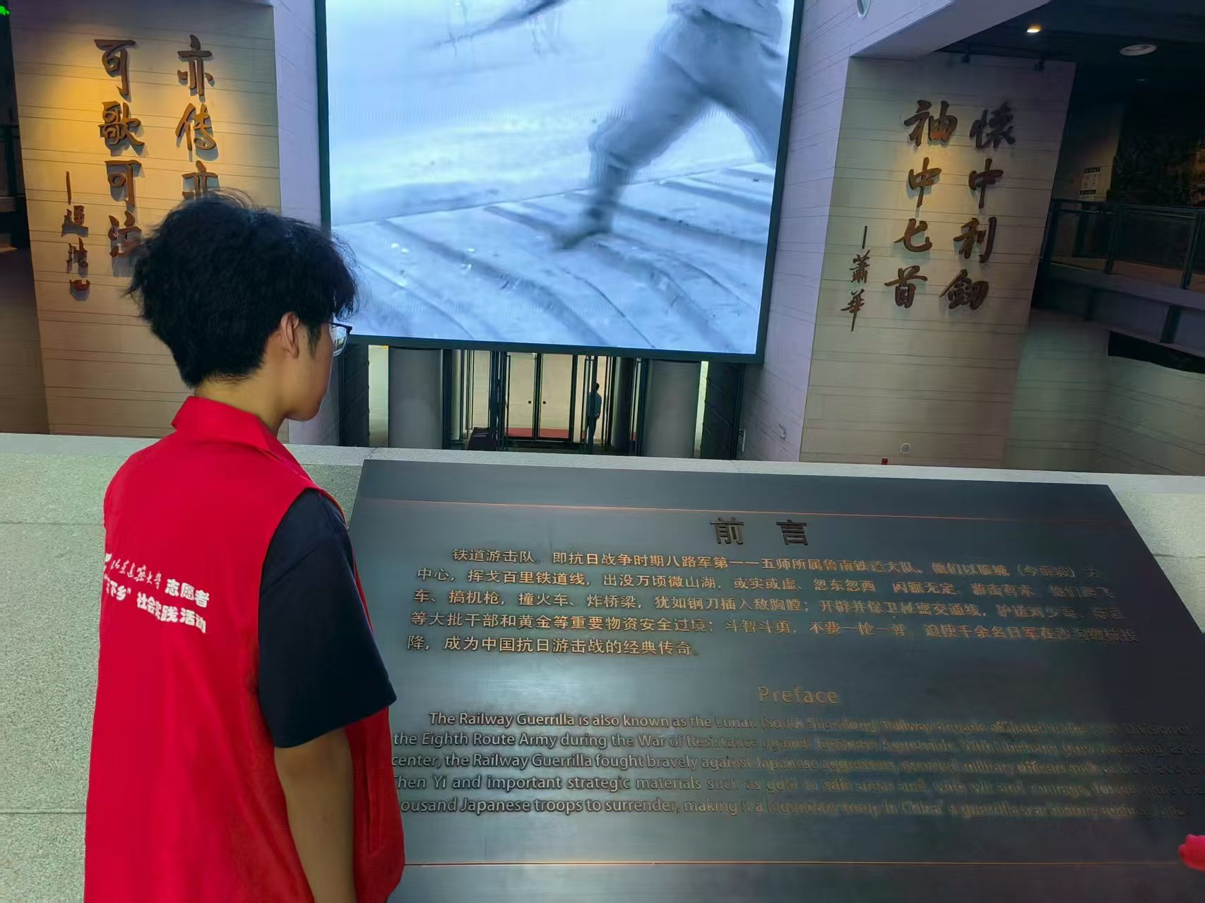 在鐵道游擊隊紀(jì)念館,隊員們通過參觀紀(jì)念館藏品、聆聽英雄事跡,深入了解鐵道游擊隊在抗日戰(zhàn)爭時期的英勇歷程,感受赤誠報國、不屈不撓、機智果敢的精神內(nèi)涵?粗o(jì)念館展廳中的一幅幅珍貴圖片、一件件實物展品,聽著講解員的講解,隊員們仿佛體驗到了游擊隊員們爬火車、炸橋梁的英勇戰(zhàn)斗場景,深刻體會到了革命先輩為民族解放事業(yè)作出的犧牲與貢獻。