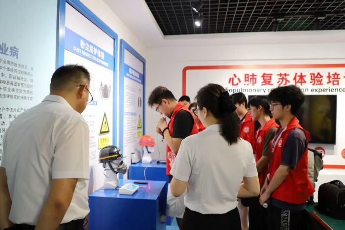 隨后劉繼偉帶領實踐團隊先后參觀了企業科研創新中心、智能化中控平臺、特種設備實訓基地。在科研創新中心,團隊成員聆聽了講解員講述企業自主研發的專利技術和創新成果,詳細了解智慧礦山建設進展;在中控室,操作員為團隊成員展示了智能化生產調度系統和"一鍵啟停"遠程操控流程;在特種設備實訓基地,講解員為隨行成員講解了企業標準化的技能培訓體系。