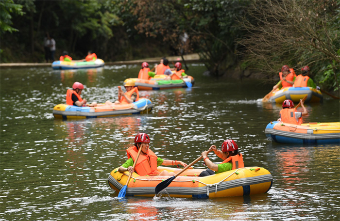 7月16日上午,小分隊(duì)探訪了兵坑漂流、險(xiǎn)灘激流,體驗(yàn)了一把驚險(xiǎn)刺激的水上之旅。沿途青山綠水,鳥鳴啾啾,仿佛置身天然氧吧。兵坑漂流不僅豐富了金沙鎮(zhèn)的旅游項(xiàng)目,更展示了其獨(dú)特的自然風(fēng)光與生態(tài)魅力,令人難忘。隊(duì)員們紛紛表示,此次探訪不僅是對自然美景的享受,更是對心靈的一次洗滌,深刻體會到人與自然和諧共生的美好。