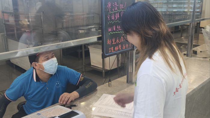在四食堂,面對識字不多的叔叔阿姨,隊員們放棄書面問卷,改用“聊天式訪談”:從“有沒有遇過‘高薪招工’要先交押金”到“簽合同時會不會細看條款”,慢慢打開了大家的話匣子。