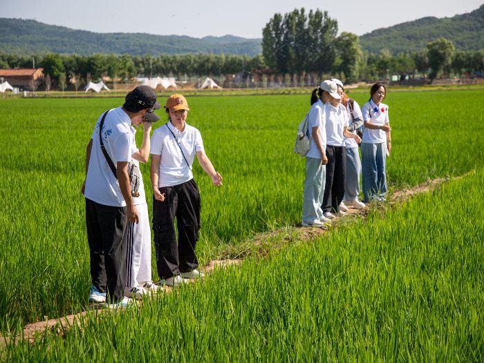 以調研為基,探尋產業融合新路徑。實踐隊以“直羅貢米”為切入點,深入胡家坡村田間地頭。在村副書記的帶領下,隊員們了解了直羅鎮“稻魚共生、稻蟹共養”的綠色生態模式。通過走訪村民,團隊形成了關于水稻種植技術推廣、品牌營銷短板的調研報告,并結合專業所學,圍繞文旅IP打造、銷路拓展、農旅融合等與村鎮干部座談,展現了青年學子的務實擔當。