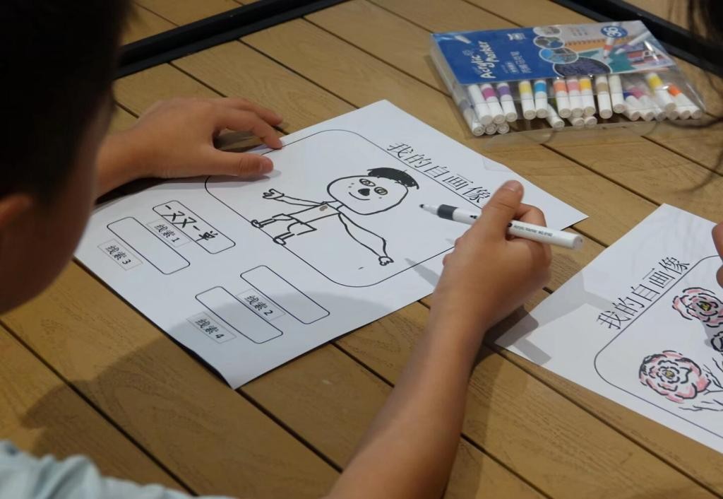 破冰環節結束后,活動進入“破冰環節——我的自畫像”環節。小朋友們人手一張畫紙和一套彩筆,在主持人的引導下認真畫下自己的自畫像,還在畫旁寫下四條與自己相關的線索。創作完成后,團隊成員從所有自畫像中隨機抽取,隨后大家一同根據畫像和線索猜測畫的是誰。現場互動頻繁,孩子們積極參與競猜,氣氛十分熱烈,在歡聲笑語中進一步拉近了彼此的距離。