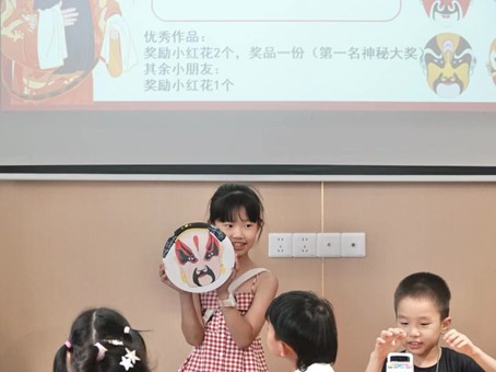 活動伊始,主講人譙媛媛(園園老師)以生動有趣的方式為小朋友們開啟了臉譜文化之旅。她先介紹了京劇臉譜的基本知識,講解了不同顏色所代表的含義:白色象征陰險、奸詐等人物形象,紅色代表忠貞、英勇、俠義的正面角色,黑色則體現正直、忠誠、鐵面無私的人物特質。同時,園園老師展示了多張經典臉譜圖片,還播放了京劇小段音頻,營造出濃厚的傳統戲曲氛圍,啟發孩子們的創作靈感,孩子們聽得十分專注。
