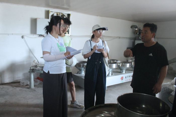 圖為實踐隊員在合作社內評估茶葉質量,了解夏季鮮茶的市場狀況。王晶 供圖