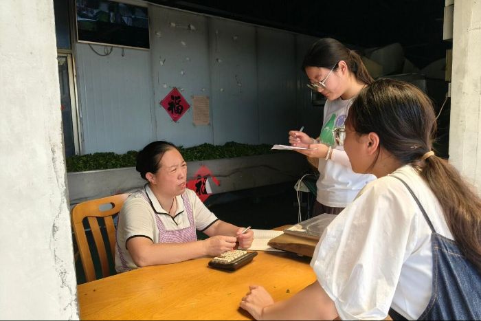 圖為實(shí)踐隊(duì)員采訪春萍茶廠工作人員,了解夏季鮮茶的市場(chǎng)狀況。王晶 供圖