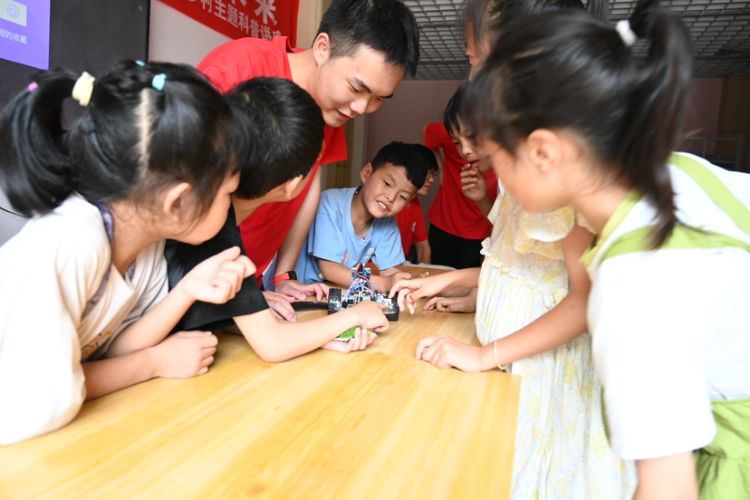 從啟蒙引導到科學實踐,團隊用多樣形式為鄉村孩子打開認知新窗口。“播撒智慧種子”分享會點燃了孩子們對大學的向往,隊員們用生動平實的語言,向孩子們描繪了多彩的大學校園生活和專業特色。面對孩子們對大學生活充滿好奇的提問,隊員們耐心解答,悄然在他們心中種下夢想的種子;隨后的“‘AI’啟智,創建未來”科普講座,通過單片機小車實物案例,將智能硬件基礎知識變得通俗易懂,激發孩子們對人工智能領域的濃厚興趣;“一起探科學,點亮科技夢”活動更將理論知識化為實踐體驗,隊員與孩子們共同拼裝手搖發電機,在動手過程中傳遞科學原理,讓科技魅力在互動中深入人心。
