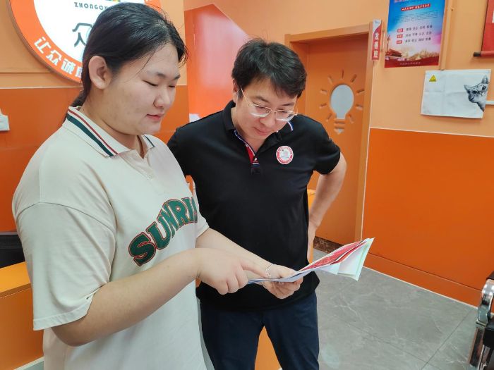 圖為實踐隊員認真向社區(qū)居民宣傳紅色革命知識。中國青年網(wǎng)通訊員 鄭文雅 攝