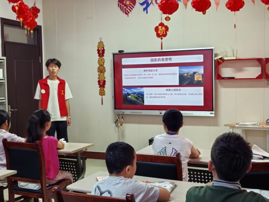 互動環節中,實踐隊設計了“國防知識小競賽”,問題兼顧知識性與趣味性,從“我國陸地邊界線長度”到“全民國防教育日是哪天”等。現場的小朋友踴躍回答,愿望當軍人的小輝同學興奮地告訴隊員們自己了解到的國防知識。剛上小學五年級的小航舉手提問,詢問長大后能否當宇航員守護太空,得到隊員的積極回應。現場掌聲、笑聲不斷,國防意識在輕松互動中悄然扎根。