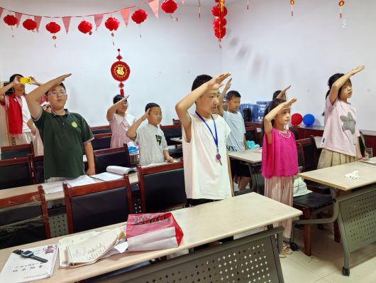 活動尾聲,實踐隊向孩子們發放了《國防知識手冊》,并與社區共同倡議:“從關心國防新聞做起,從支持軍人軍屬做起,讓愛國防、護家國成為社區新風尚。”陪同孩子的李阿姨感慨道:“以前覺得國防離我們普通人很遠,今天才知道,保護好家園、支持國家發展,就是在為國防出力。”活動最后,在實踐隊員的帶領下,孩子們全體肅立,齊聲高唱中華人民共和國國歌和中國少年先鋒隊隊歌。嘹亮的童聲在社區上空久久回蕩,稚嫩而莊重的臉龐寫滿了對祖國的熱愛與自豪,為此次意義深遠的國防教育活動畫上了充滿希望與力量的句號。