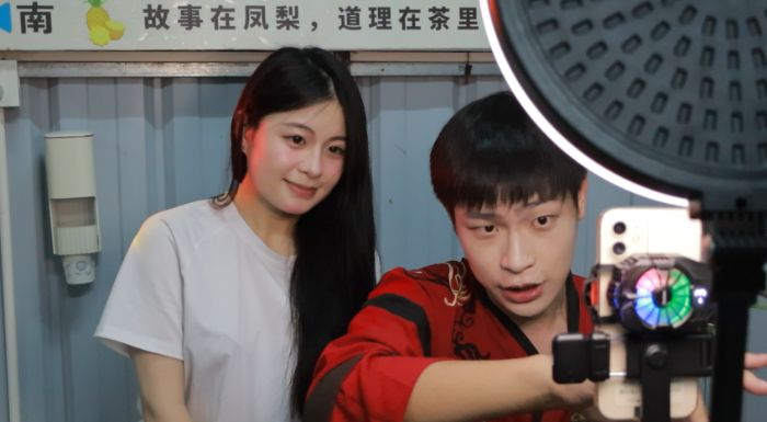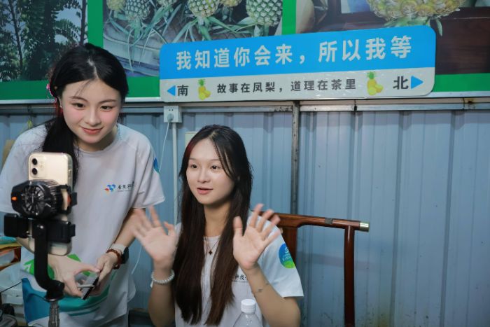 夜幕降臨時(shí),團(tuán)隊(duì)帶著設(shè)備再次出發(fā)。細(xì)心調(diào)試燈光,暖黃的光暈灑在鳳梨上,勾勒出果實(shí)的飽滿(mǎn)輪廓;前期檢查網(wǎng)絡(luò)信號(hào),確保信號(hào)能夠穩(wěn)穩(wěn)傳遞鳳梨的香甜。當(dāng)主播換上漢服、以“梨始皇”的有趣人設(shè)亮相,一場(chǎng)融合了詩(shī)意與創(chuàng)意的直播,正式拉開(kāi)帷幕。