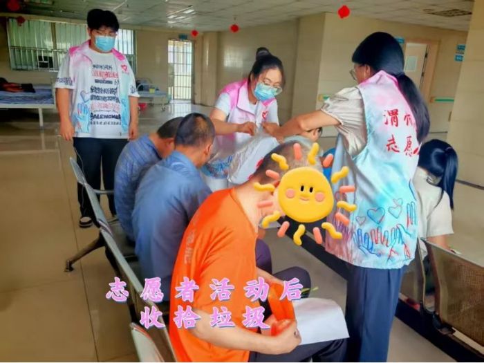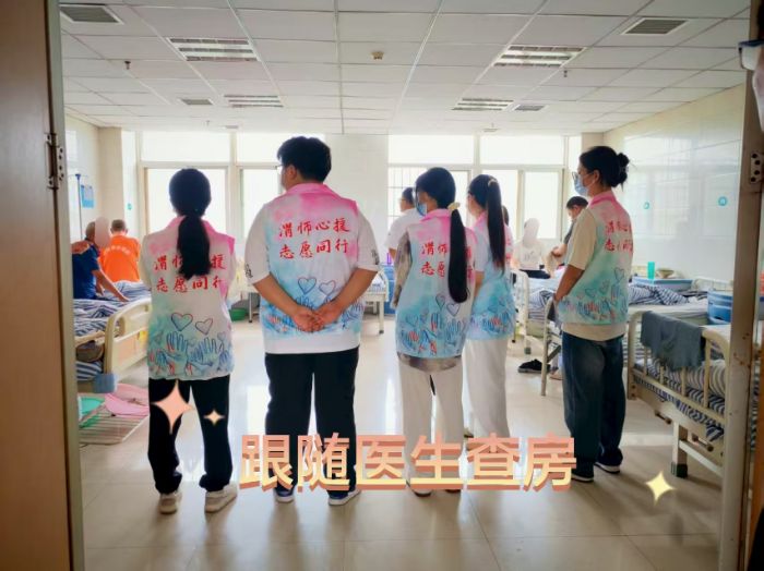 志愿者們分別抵達女病區與康復病區后,科室負責人對他們的到來致以熱烈而誠摯的歡迎。負責人先是細致地為志愿者介紹了兩個病區患者的基本情況,隨后便帶領大家進入病區參與查房工作。在每日的例行查房中,志愿者們得以近距離接觸真實的精神疾病案例,將課堂上學到的理論知識與臨床實際相結合,在觀察與反思中收獲了遠超課本的認知與感悟。在渭南市精神衛生中心開展活動的這段時間里,各病區的醫護人員始終給予志愿者們全方位的支持與悉心指導,從流程銜接、患者溝通到活動開展細節,都提供了有力保障,讓整個志愿活動得以井然有序地推進。