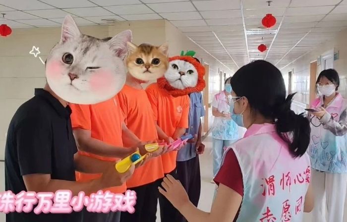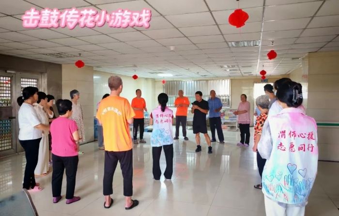 除了傳統武術練習,志愿者們還精心設計了一系列趣味活動,讓患者們在輕松愉悅的氛圍中活動起來。在與醫護團隊的研討協商下,志愿者們精心策劃了“擊鼓傳花”“珠行萬里”兩項康復活動。活動開展期間,現場氛圍熱烈,多名患者在活動結束后主動與志愿者交流感受,分享心得體會。在一個個精心策劃的強身健體小游戲中患者們不僅鍛煉了身體同時也感受到了快樂,很多患者在平淡的康復生活中漏出了久違的笑容,志愿們看到患者們的笑容也感受到了實踐的意義。