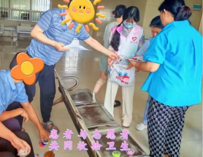 勤勞育心,患者與志愿者進行了一場別開生面的勞動實踐,這不僅是對患者行為能力的鍛煉,更是一次價值觀的重塑與社會責任感的培養。志愿者與患者攜手開展了病區清掃活動,為身心康復搭建起堅實的實踐平臺。活動中,大家分工明確,默契配合。沒有刻意的安排,偶爾對視時的微笑里藏著無需言說的信任。每個人都帶著飽滿的熱情投入其中,當清掃后的病區變得窗明幾凈,空氣中仿佛都多了幾分清爽。患者們看著共同勞動的成果,臉上露出了欣慰的笑容。這次活動不僅讓他們在揮灑汗水中體會到“動手創造價值”的樂趣,更在分工協作中重新感知“被需要”的意義——那份為集體付出的責任感,如同種子般在心底萌發,為他們未來重返社會、融入生活悄悄積蓄著力量。