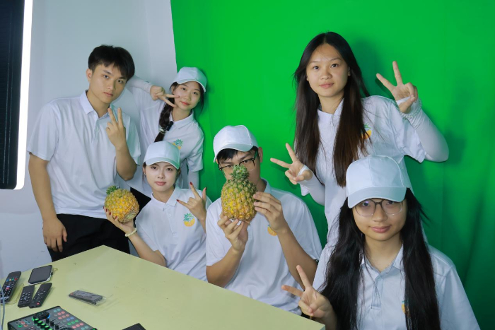 抵達果園后,在隊長的指導下,隊員們迅速進行設備的有序擺放以及直播棚的搭建。做足充分準備后,隊員們立即開啟“芒果鳳梨”專場助農直播,認真介紹芒果鳳梨的品種特點以及其營養價值。直播的順利進行,推動了特色農產品宣傳的同時,也助力了鄉村產業,拓寬了芒果鳳梨的消費渠道。