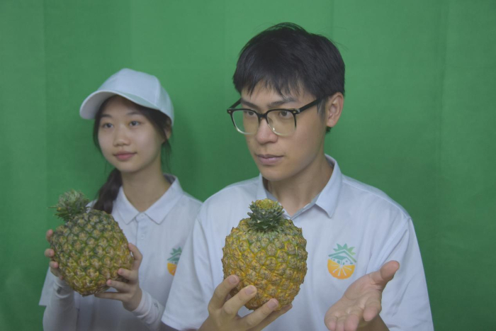 圖為隊員向網友展示當地鳳梨的特色(張鐘寧攝)