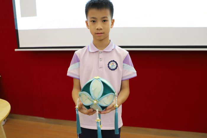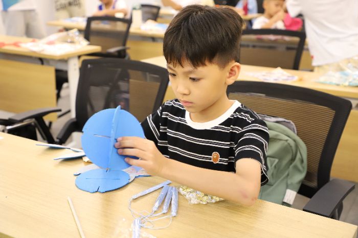 最讓人期待的是裝配環(huán)節(jié)。孩子們小心翼翼地將縫好的布套在竹篾框架上,掛上象征“喜訊頻傳”的小銅鈴,最后裝上LED燈串。“亮起來(lái)啦!”當(dāng)燈籠被點(diǎn)亮,五彩的布料透出柔和的光,銅鈴輕輕晃動(dòng)發(fā)出清脆聲響,孩子們興奮地舉起自己的作品互相展示。10歲的小宇給燈籠系上了紅色流蘇:“我要掛在房間里,媽媽說(shuō)紅色代表紅火美滿。”