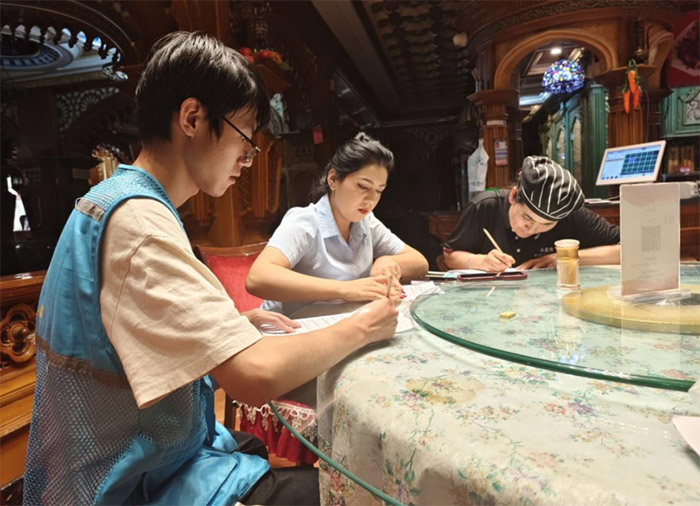 活動期間,志愿服務團緊扣“推廣國家通用語言,筑牢民族團結根基”的核心目標,精準對接社區需求,推出系列特色實踐舉措。在“國語小課堂”上,志愿者們從漢字基礎筆畫、發音規則等基本功教起,結合紅色故事宣講和生活場景實例,幫助社區少數民族居民加深對漢字的理解與運用,逐步提升語言表達能力。針對部分少數民族商戶因經營繁忙難以參與集中學習的情況,團隊組建“推學入戶”小分隊,攜帶練習本、字帖等學習資料,利用商戶閑暇時段上門開展一對一教學,耐心糾正發音偏差與書寫錯誤,從日常對話到漢字書寫,逐項破解溝通難題,讓語言學習融入生活場景。