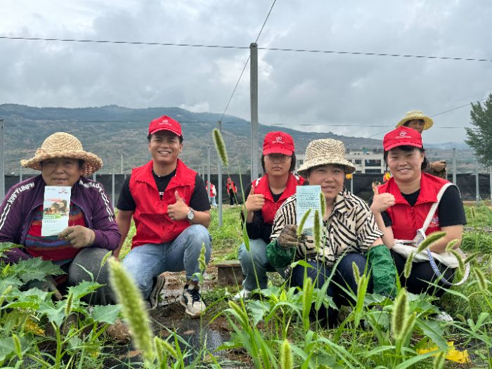 勞動教育環節,志愿者們主動幫助清理基地雜草,并積極向基地務工人員推廣普通話。在為“淫羊藿”的健康生長營造更適宜環境的同時也切實體驗了種植工作的辛勞與意義。