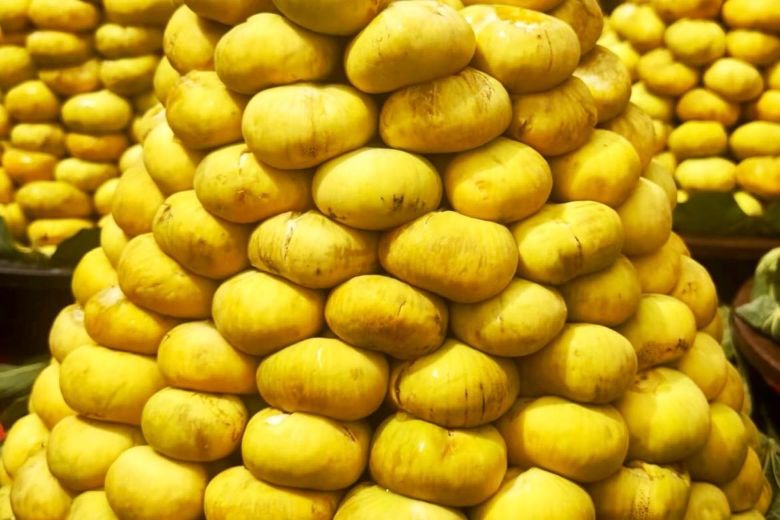 圖為文化旅游景區(qū)內(nèi)售賣的金黃無(wú)花果堆成的“甜蜜小山”。 美合日努爾 供圖