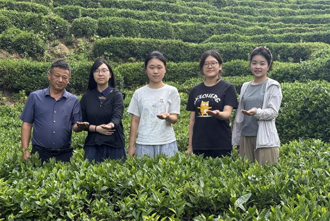 圖3:“皖”頃碧綠團隊與茶園負責人合影張梓昱供圖