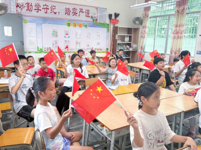 廣東科技學(xué)院“籽籽同行”突擊隊(duì)在清遠(yuǎn)三水瑤族鄉(xiāng)開展支教活動(dòng)時(shí),創(chuàng)新采用手勢(shì)舞教學(xué),為當(dāng)?shù)睾⒆由狭艘惶蒙鷦?dòng)的家國(guó)情懷教育課,將“國(guó)”與“家”的深刻內(nèi)涵融入課堂,在孩子們心中播下愛黨愛國(guó)愛家鄉(xiāng)的種子。