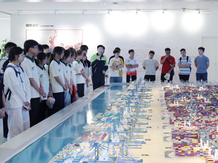 在沙盤與視頻展示中,實踐團成員直觀了解到碼頭的硬核實力:如今,中國港口吞吐量穩居世界第一,北部灣國際門戶港作為“一帶一路”重要節點,創新采用全球首個U型工藝布局,建成全國首個海鐵聯運自動化集裝箱碼頭,服務西部陸海新通道。