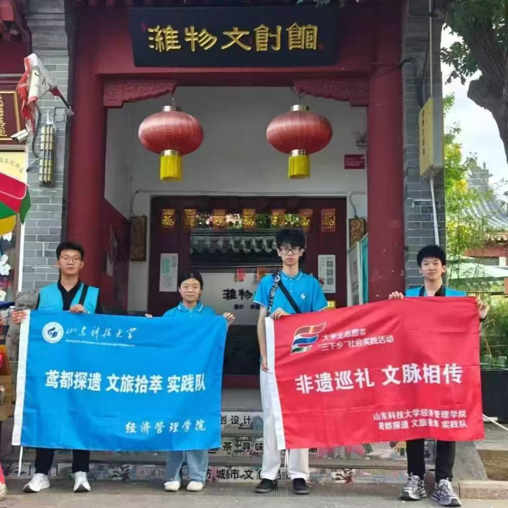 為深入貫徹文化傳承發展戰略,響應國家非物質文化遺產保護號召,幫助大學生深化對傳統文化的認知、增強非遺保護責任感,7 月 26 日下午,山東科技大學經濟管理學院 “鳶都探遺 文旅拾萃” 實踐隊于濰坊十笏園、濰坊市文創館及奎文門開展了濰縣磚雕主題社會實踐活動。