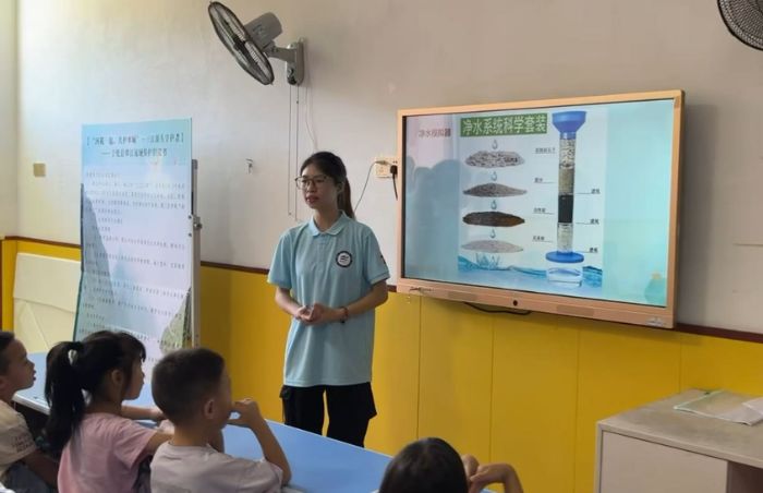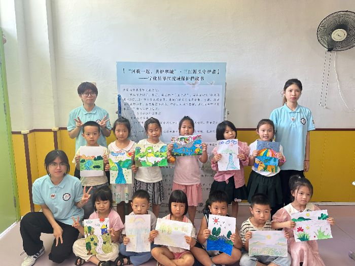 童心護碧水,播撒生態文明“綠色種”在社區活動中心,實踐隊為30余名小朋友帶來別開生面的愛河護河宣教課堂。通過“污水凈化小實驗”,孩子們親眼見證渾濁污水經過石英砂、活性炭層層過濾變得清澈。隊員們還精心設計了互動游戲等環節,在寓教于樂的體驗中向小朋友們講解水資源保護知識。活動尾聲,孩子們用五彩畫筆繪就“心中的翠江”,稚嫩畫作中躍動著守護母親河的純真愿望。這種理論與實踐相結合的活動形式,既深化了實踐隊員的專業認知,也在孩子們心中播下了綠色發展的種子。