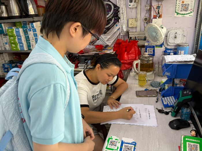 實踐隊隊員對沿途的商戶進行問卷調查 張馨月通訊員攝