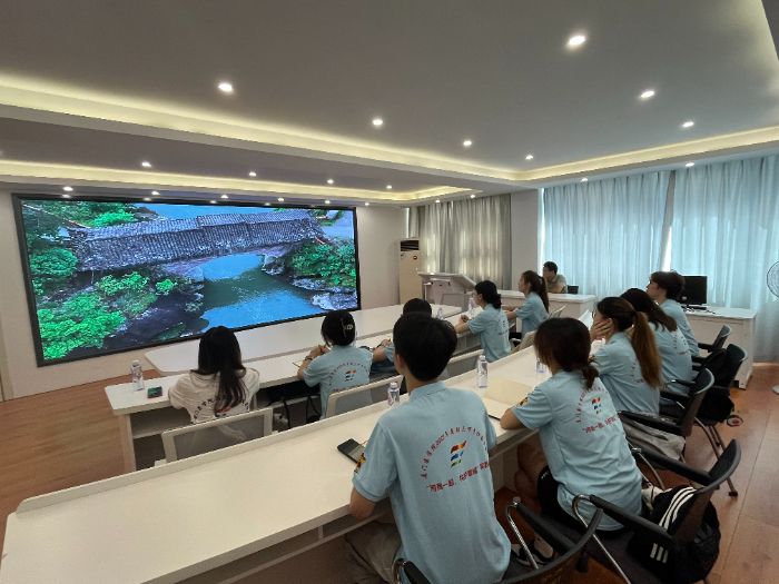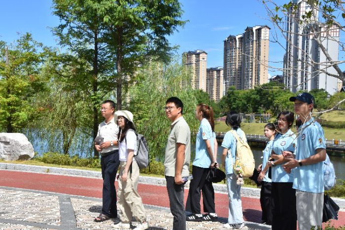 對話河長制,解碼綜合治理“智慧經”實踐首站,隊員們來到寧化縣河長制辦公室,縣水利局李副局長向隊員們系統介紹了翠江綜合治理情況,包括近年來實施的各項治理措施、取得的顯著成效以及當前面臨的挑戰。隊員們認真聆聽,積極提問,就科技賦能、群眾參與機制、農村面源污染治理等問題與工作人員展開熱烈討論。隨后,實踐隊前往河長制公園進行實地考察,在專業人員的講解下,隊員們近距離觀察了解河道治理、生態護岸等工程,切身感受到"河長制"實施以來取得的顯著成效。隊長張同學表示:“河長制就像給每段河流配上了專屬‘醫生’,這種系統性治理思維值得我們深入學習。”