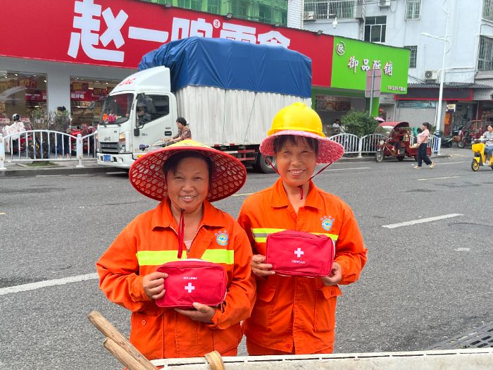 實踐隊隊員給環衛工人送防暑物資 張譯元通訊員攝