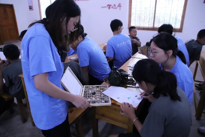 圖為孩子們正在認真繪制自己心中的礦石形象,筆觸稚嫩卻充滿想象力。實踐隊員在旁耐心引導。攝影 康建勇