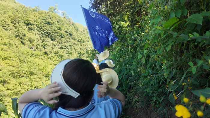 真正的考驗很快來臨。接近水源地的最后幾公里,地勢陡然險峻。隊員們需要手腳并用地攀爬近乎垂直的陡峭巖壁,腳下是濕滑的苔蘚和松動的碎石,每一步都必須踩實、抓牢。沉重的喘息聲此起彼伏,汗水順著發梢、臉頰不斷滴落,浸透了衣衫。竹杖敲擊巖石發出篤篤的聲響,成為寂靜山林中唯一的節奏。遇到極其陡峭處,隊員們互相扶持,前面的同學奮力攀登后轉身伸手用力將后面的同伴拉上來。指導老師不斷提醒大家注意安全,重心放低,踩穩看準。“小心!”“拉住我的手!”“這邊有塊石頭松了!”關切的呼喊在山谷間回蕩。這段艱險的攀爬,不僅是對體能的極限挑戰,更是對意志的淬煉。每一步的艱辛,都讓隊員們對即將見到的源頭之水,增添了一分敬畏與期盼。然而,當隊伍咬緊牙關,終于翻越最險峻的那道山脊時,眼前豁然開朗的景象瞬間滌蕩了所有的疲憊與艱辛,仿佛大自然給予勇士的最高獎賞。隊員們被這深藏于貧困山區腹地的壯美與純凈深深震撼,紛紛駐足,屏息凝神,貪婪地用眼睛記錄下這難得一見的絕美畫卷,相機的快門聲此起彼伏。這美景,是汗水換來的勛章,也讓“守護”二字在他們心中變得無比具體而沉重。“原來村里喝的水,就來自這樣純凈美麗的地方,“這一路的辛苦,值了!”