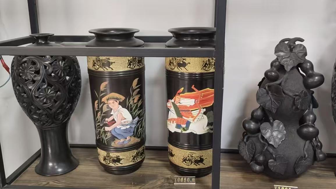 8月1日,實踐隊走進雄縣黑陶工作室,與河北省民間工藝美術大師、黑陶技藝傳承人劉小偉交流。劉小偉家族祖孫三代傳承黑陶技藝,他帶領團隊以當地紅膠土為原料,復原并創新黑陶制作工藝。隊員們在觀察黑陶器皿以及印有黑陶紋樣的隊旗時,深切體會到這門失傳四千余年技藝重獲新生的不易。