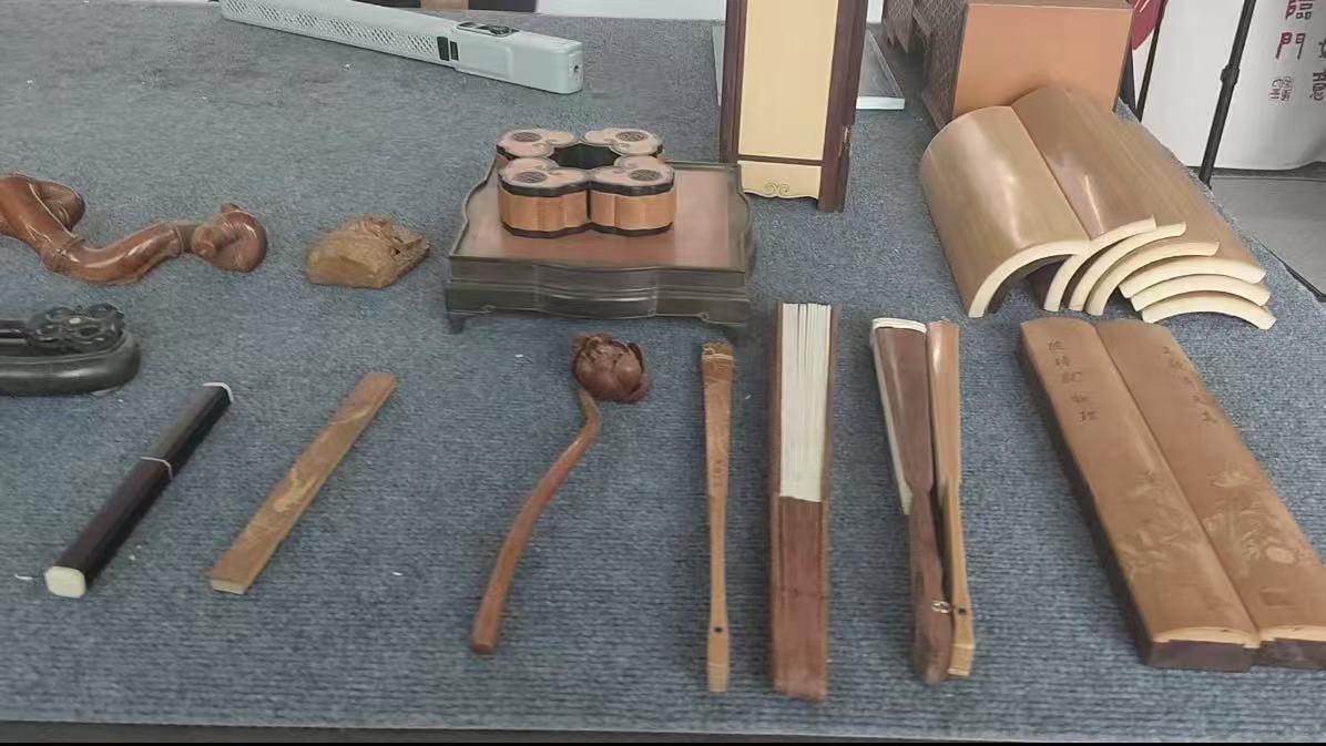 活動首站,實踐隊拜訪了京簧竹刻第四代傳承人王樂修。作為省級非遺代表性傳承人,王樂修從1982年起研習技藝,將傳統紋飾與現代元素融入創作。他向隊員們展示的京簧竹刻作品,以及印有蒼勁“京簧竹刻”字樣和精致竹紋的隊旗,讓大家直觀感受到這門技藝的歷史底蘊與創新活力。
