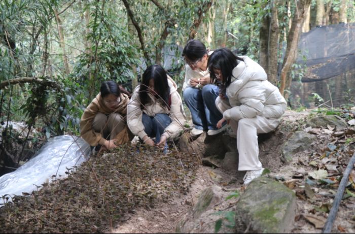 在安溪中科三安植物工廠,實踐團調研了“無人植物工廠”生產模式。金線蓮在模塊化多層培養系統中,依托精準環境調控,實現高效、標準化的“訂單農業”生產,展現了智慧農業的先進形態,也使隊員深入思考其技術推廣前景。在永春蓬壺鎮深山,團隊考察了泉州市金勝生態農業有限公司的林下種植基地。金線蓮在仿野生環境中茁壯生長,負責人講解了如何利用森林天然生態進行培育。該模式產出地道、市場認可度高,是發展林下經濟、踐行“兩山”理論的典型案例。從“植物工廠”到“林下秘境”,強烈對比深化了團隊認知:設施農業凸顯“可控與高效”,是突破資源約束的重要方向;林下種植體現“生態與品質”,是山區振興的有效途徑。二者是適應不同市場與資源的互補選擇。